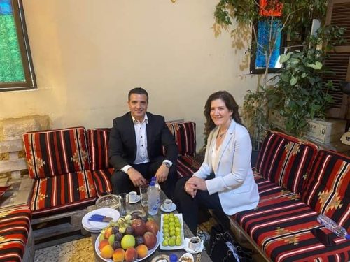 قهوة وفواكه في مقهى فهيم في منطقة التل النائب ايهاب مطر مع سعادة السفيرة الأميركية دوروثي شيا.