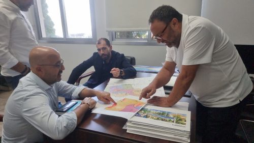 بداية الجولة كانت في مكتب شركة الميرادور حيث عرض السيد احمد الدوري علم الدين، بحضور مدير الميرادور المهندس محمد النابلسي، الخرائط المتعلقة بالمنطقة لاختيار النقطة الامثل لانشاء المحمية.