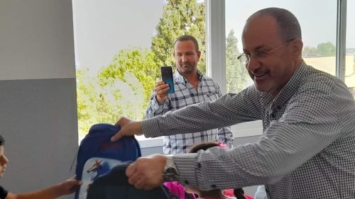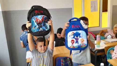توزيع قرطاسية وحقائب مدرسية ومراويل لطلاب مدرسة كروم عرب الرسمية بمبادرة كريمة من حرفوش
