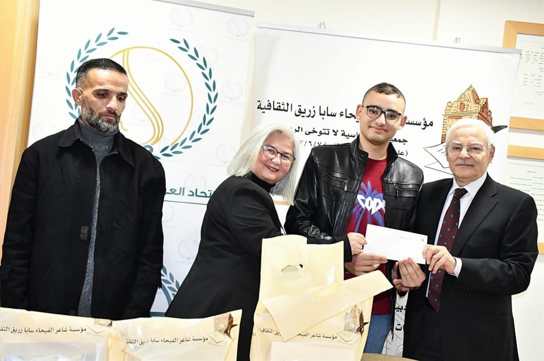 وفي الختام وزعت مؤسسة شاعر الفيحاء سابا زريق الثقافية جوائر على كل من الفائزين وتضمنت جوائز نقدية ومجموعات كتب من إصدارات المؤسسة.