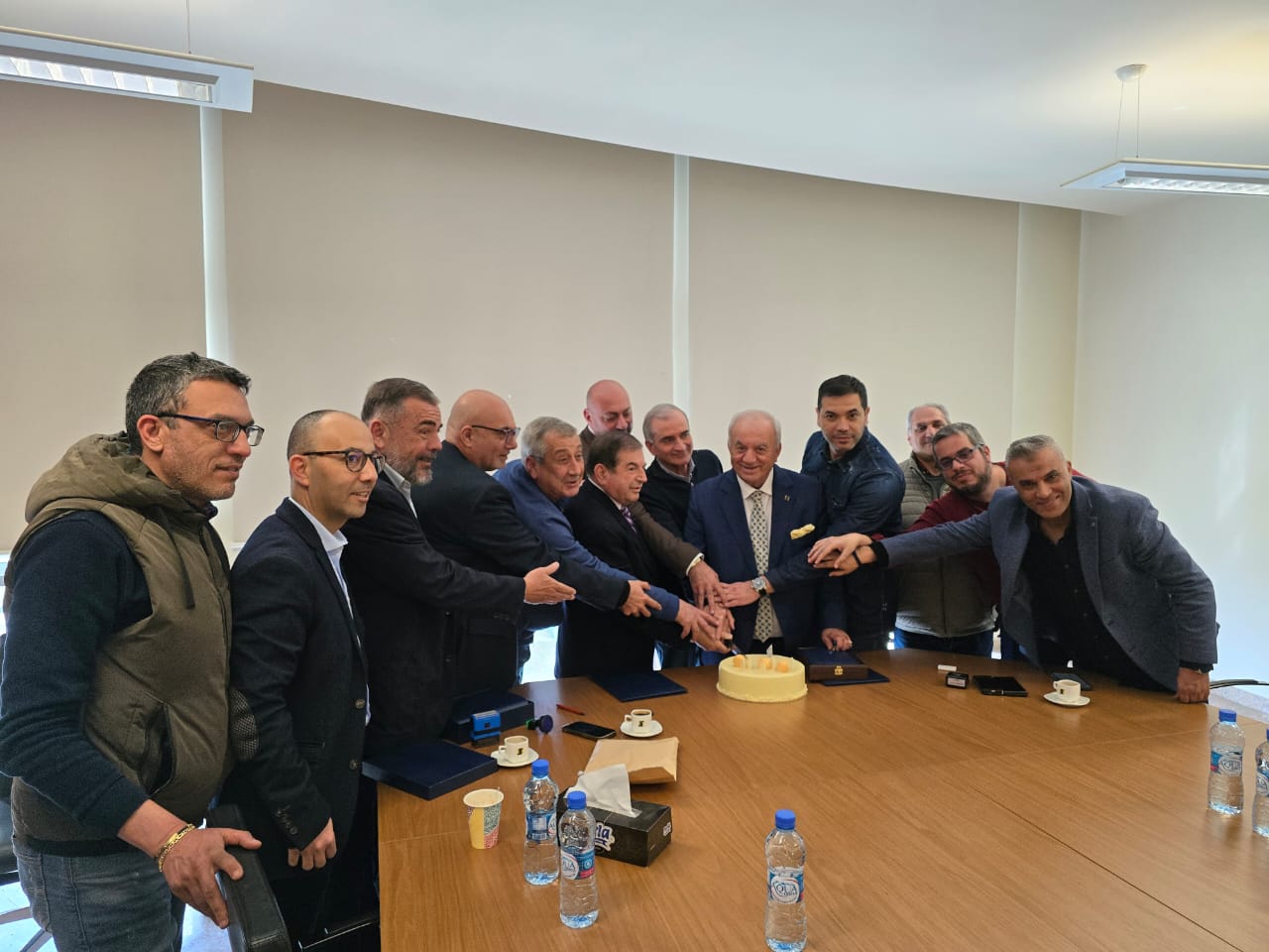 وفي نهاية المراسم سلّمت نقابة الطوبوغرافيين درعًا للنقيب بهاء حرب تقديرا لجهوده وتمّ تقطيع قالب الحلوى.