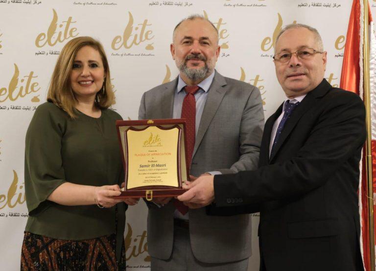 ثم أجاب على تساؤلات الحضور،وإختم اللقاء بتسلّم البروفيسور المصري درعا تقديرية من رئيسة المركز إيمان درنيقة ومدير المركز عامر الكمالي.