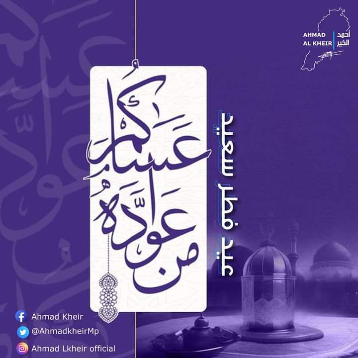 عايد النائب أحمد الخير اللبنانيين بحلول عيد الفطر السعيد، “سائلا الله عز وجل ان يتقبل من المسلمين طاعاتهم وأن يمن على البلد بالامن والسلام والاستقرار، وان يخفف معاناة اهلنا في غزة” .