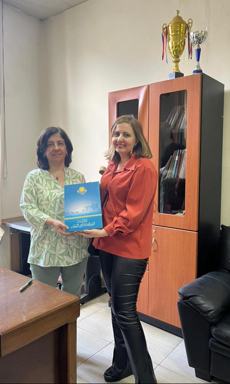 وفي الختام ، قدّمت درنيقة من مكتبة المركز هديةً تذكاريةً إلى د. الشعّار، عبارةً عن كتابٍ عن الشعر الكازاخي مترجمٍ إلى اللغة العربية.