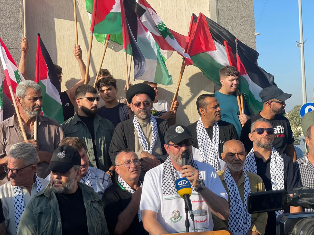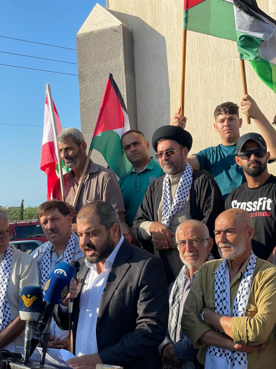 و تحدث عضو المجلس السياسي في حزب الله الحاج محمد صالح الذي بدأ كلمته بتلاوة سورة الفاتحة عن أرواح شهداء المقاومة و شهداء الأمة، و إعتبر أنه لو كان بأستطاعتنا أن نجعل كل أيام العمر من أجل فلسطين لن نتأخر عن ذلك، لأن فلسطين هي قضية الشرفاء و تحريرها واجب شرعي و أخلاقي، و من يقف مع فلسطين و شعبها المظلوم انما ينصر الحق بمواجهة الباطل و من يخذلها فهو خائن.