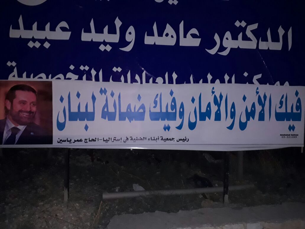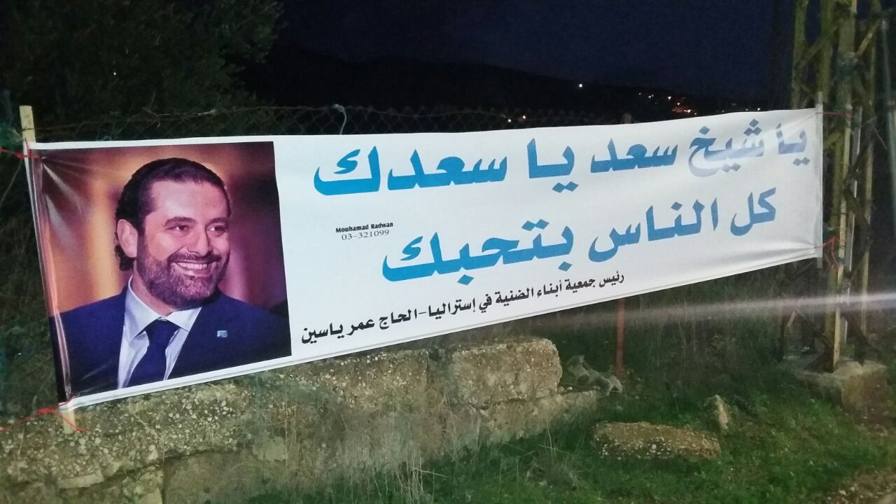 وقد رفع رئيس جمعية ابناء الضنية في استراليا المستشار عمر ياسين اللافتات التي ترحب بالرئيس الحريري ..