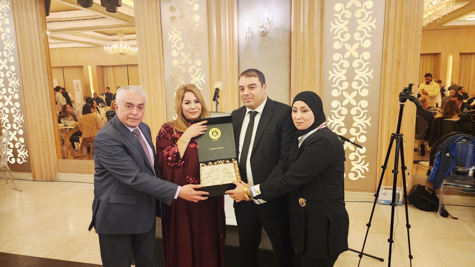 رئيس بلدية طرابلس الدكتور عبد الحميد كريمة وزوجته الأستاذة هند زيادة ، رئيسة بلدية تكريت الدكتورة هلا العبدالله ،السيد رفلي دياب ،