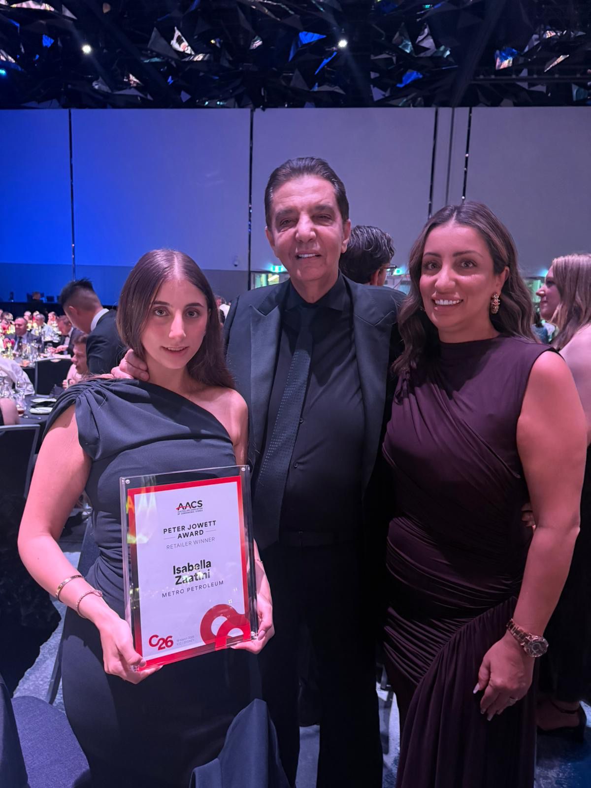فازت إيزابيلا (بيلا) زعتيني بجائزة Peter Jowett في فئة التجزئة، وذلك خلال حفل توزيع الجوائز الذي أُقيم ضمن فعاليات مؤتمر AACS Connect 2026 في مركز المؤتمرات الدولي في سيدني (ICC Sydney)، بحضور شخصيات بارزة من قطاعي التجزئة والوقود في أستراليا.