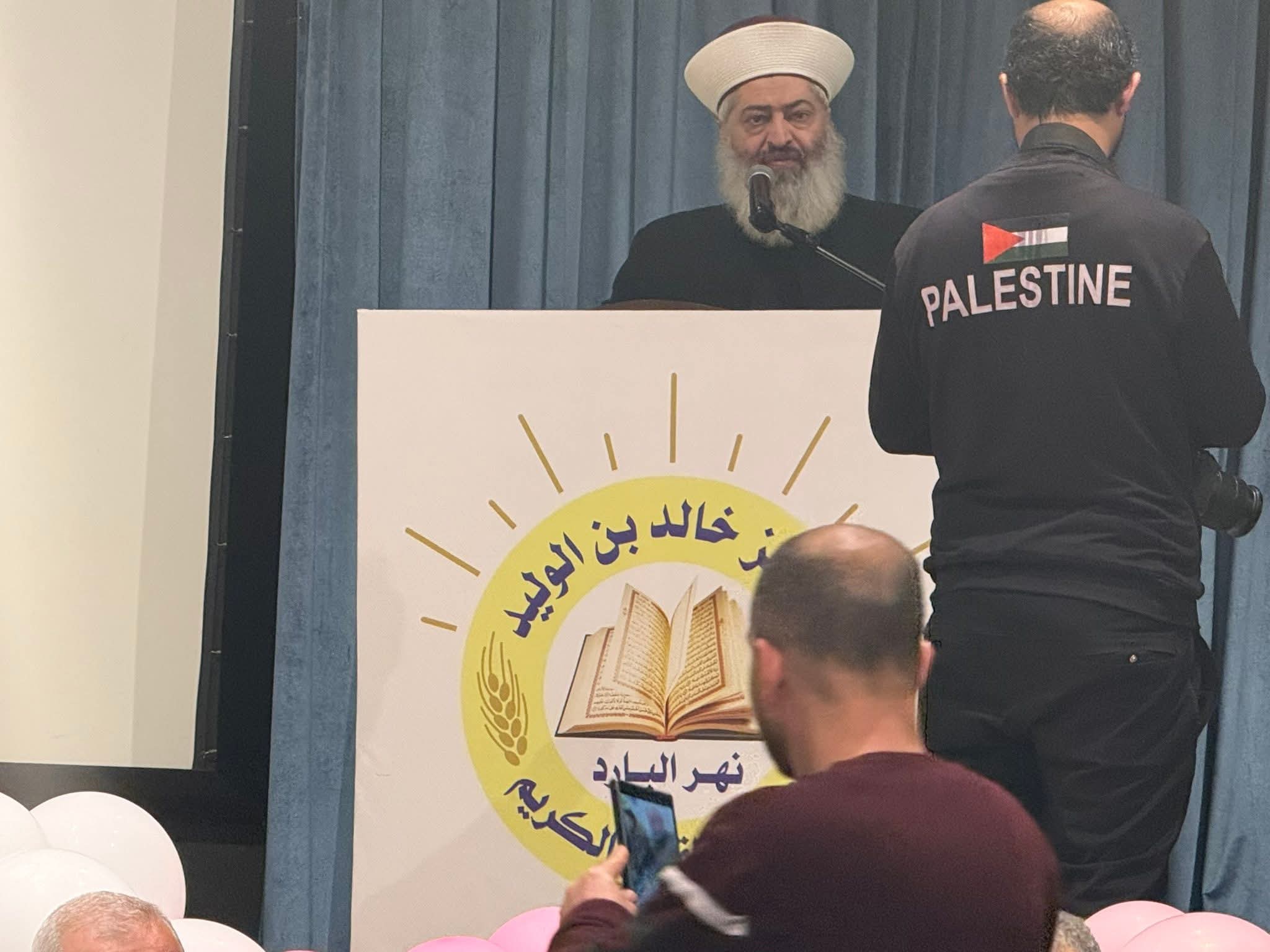 الأمين ممثلاً للمفتي الإمام بحضور مفتي عكار في تكريم طلاب وطالبات الدورة الشرعية العلمية الثالثة عشرة في مخيم نهر البارد.