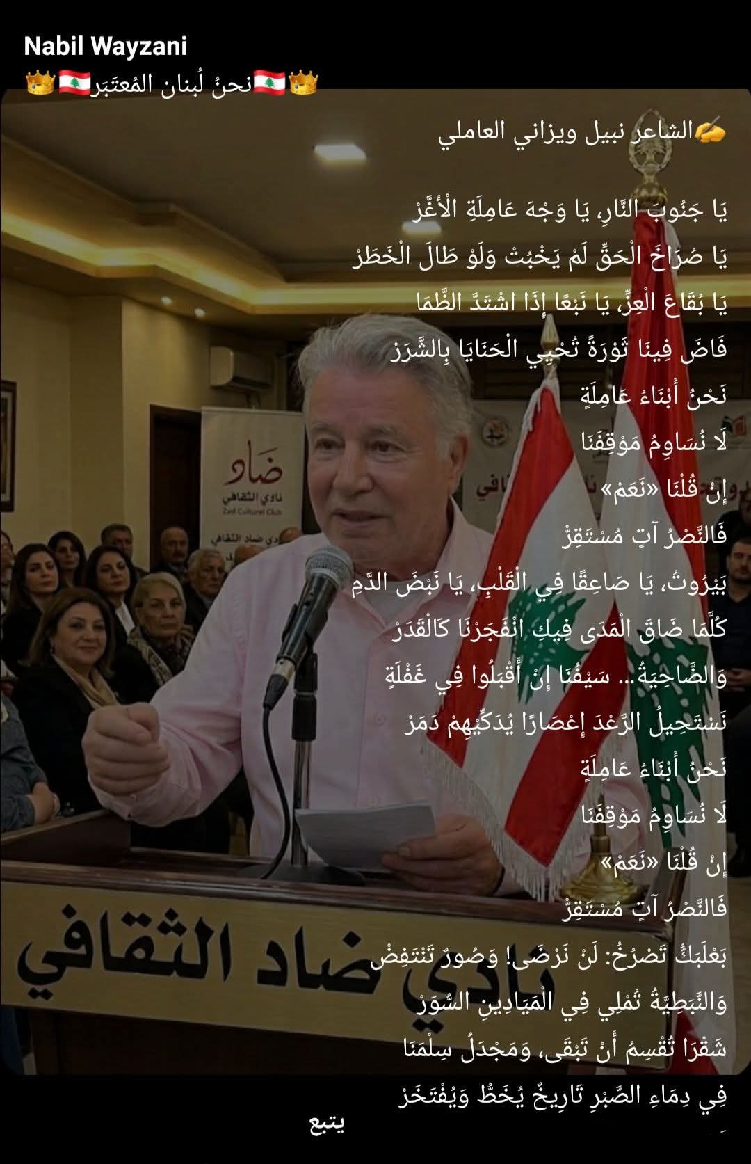 ✍️الشاعر نبيل ويزاني العاملي