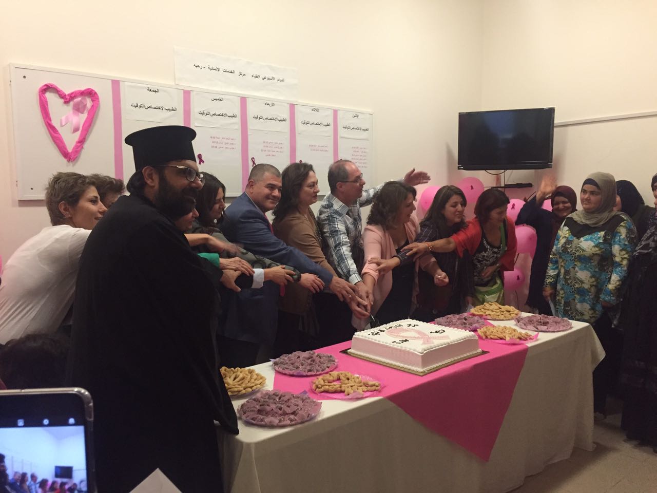 بدأ الاحتفال بكلمة لمديرة المركز السيدة راجية البيطار شكرت فيها الحضور على أعطائهم الصحة اولوية مؤكدة ان الاهتمام بالنساء وبموضوع الكشف المبكر ذو اهمية كبيرة لان النساء هن نصف المجتمع وحيت كل من يقف بجانب النساء اللواتي يعانين من مشاكل صحية مؤكدة على اهمية المعرفة الصحية وعلى ان الحملة تشمل الصورة الشعاعية اضافة الى اعطاء الارشادات الصحية لجميع النساء اللواتي يترددن على المركز من كيفية اجراء الفحص الذاتي وبعض الارشادات الغذائية التي تساعد في الوقاية من هذا المرض .