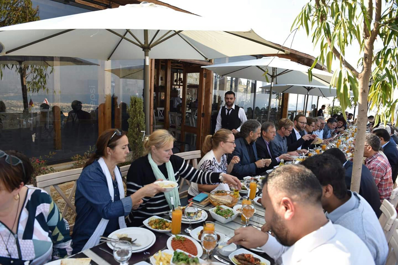 بداية كان استقبال رسمي للوفد من قبل رئيس الاتحاد واعضاء مجلس الاتحاد رؤساء بلديات الاتحاد الخمسة , بعدها تلا رئيس الاتحاد كلمة ترحيب بالوفد الالماني شاكرا لهم تتويج التواصل القائم معهم منذ ستة اشهر بزيارة الاتحاد وتحدث في كلمة ااترحيب عن صعوبات مجتمع المحلي التي تعاني منها البلديات في ظل أزمة اللاجئين السوريين آملا ان يفتح هذا التنسيق مع البلديات الالمانية افق التعاون وتبادل الخبرات والتحضير لمشاريع مستدامة للمنطقة .