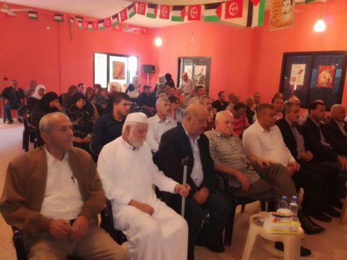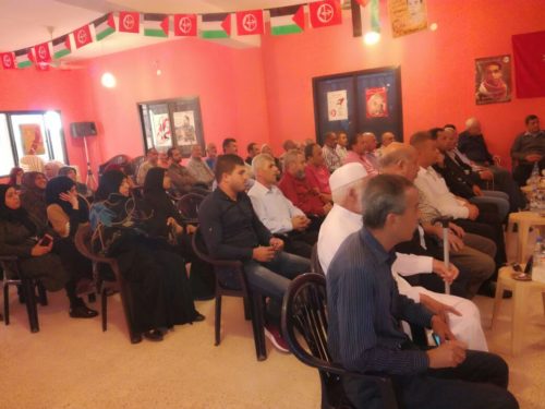 واستهل الأستاذ جابر سليمان مداخلته بالتعبيرعن اعتزازه بوجوده بين أهله وشعبه في مخيم البرج الشمالي، كما توجه بالشكر للجبهة الشعبية لتحرير فلسطين.