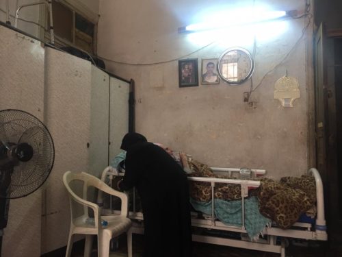 عائلة مؤلفة من أب عاجز في السرير منذ حوالي ١٠ سنوات وسيدة عجوز على ملامح وجهها تعب السنين وحزنٌ دفين … تتمتم بكلمات الحمد لله على كل شيء .. لديها إبنة مطلّقة وعقلها ليس موزوناً وشاباً لديه إعاقة … وآخر متزوج ولا نعرفه …