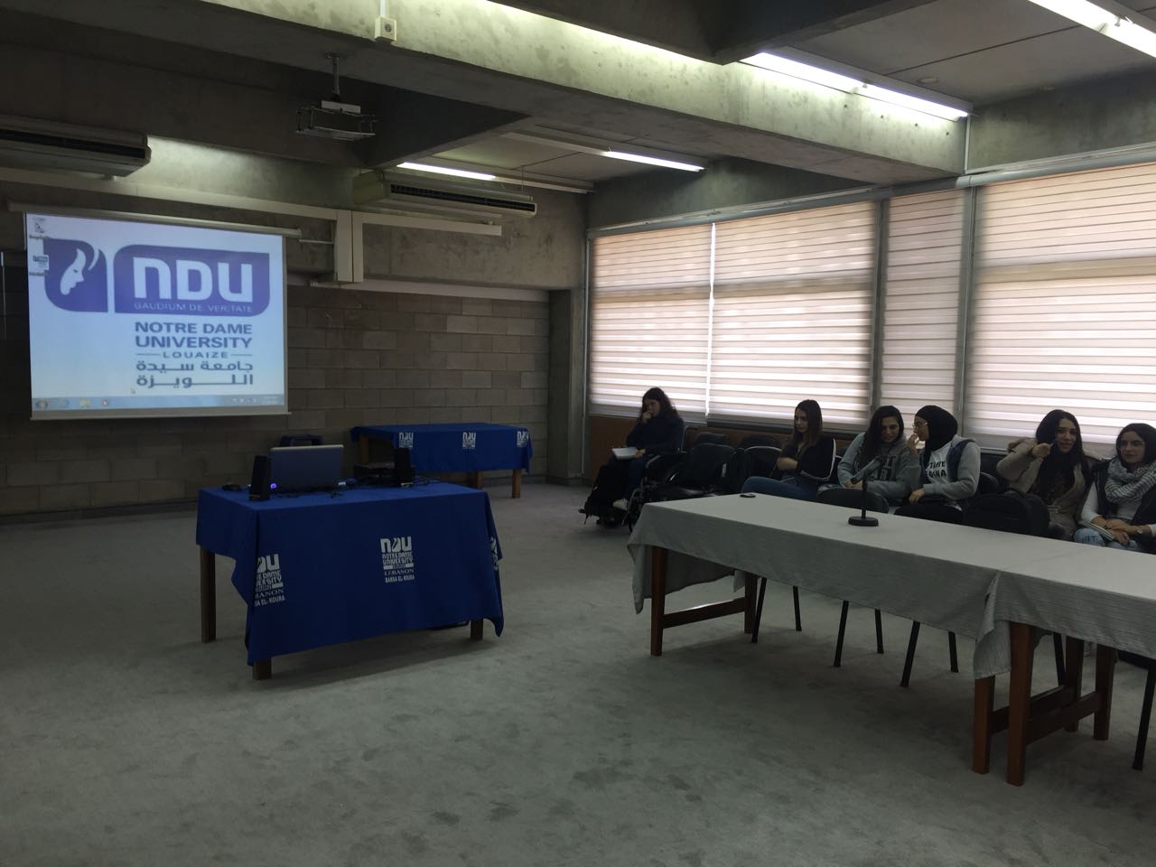 في البداية استقبل مدير الجامعة في طرابلس الأب فرنسوا عقل حيث رحب بها شاكراً حضورها الى حرم الجامعة مشدداً على دعمه لحقوق الانسان بشكل عام وحق المرأة بشكل خاص
