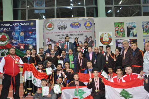 يهدي الاتحاد اللبناني لرياضات قوة الرمي والدفاع عن النفس، أطيب تحياته لحضراتكم، ويرسل لكم النتائج التي حققتها البعثة اللبنانية الى بطولة العالم لرياضات قوة الرمي باشراف الاتحاد الدولي لرياضات قوة الرمي والدفاع عن النفس، والتي اقيمت في العاصمة مينسك روسيا البيضاء، ضمن دورة الالعاب القتالية السابعة IMGC- International Martial Arts Games من 29 نوفمبر الى 4 ديسمبر 2017. وبعثة الاتحاد مؤلفة من 40 فردا من فئات الكبار والشباب والناشئين اناثا وذكوراً من لاعبين ومدربين واداريين والبعض من الاهالي، يمثلون أندية لبنانية من عدة مناطق الشمال وبيروت والجنوب وهم؛ نادي الساموراي الرياضي – طرابلس، نادي فنون الدفاع عن النفس – الشويفات، ونادي العهد – بيروت.