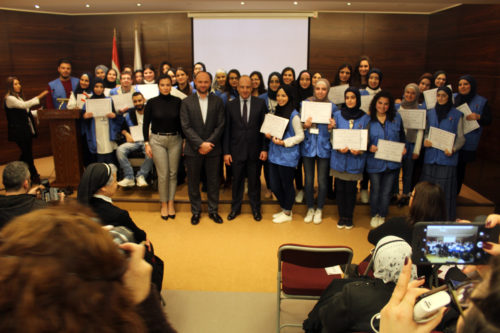 في الختام تم توزيع الشهادات على المتطوعين الخريجين في البرنامج