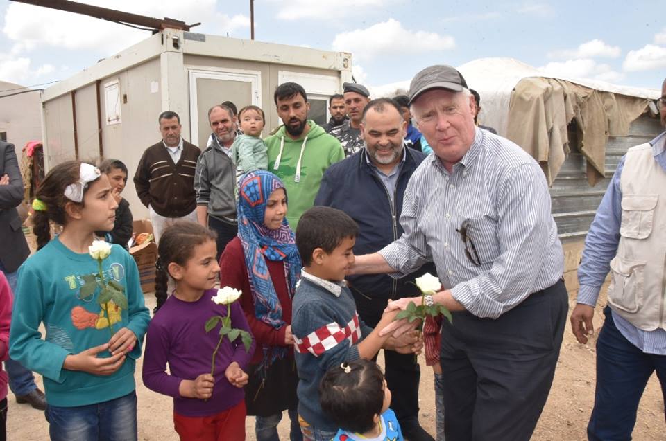 وقد صرح رئيس الوفد انا من واشنطن العاصمة (منطقة حولها) من الولايات المتحدة الامريكيه نحن هنا لنساعد بتوزيع المساعدات الغذائية التي يحتاجها اللاجؤون السوريون في هذا المخيم و نحن متشوقون جدا لكوننا هنا لنساعد هؤلاء اللذين هم حقا بحاجة ماسة للمساعدة ونحن شاكرون لاننا حظينا بهذه الفرصه و اننا نشعر بالتواضع و بشدة ونحن نعتقد انه بامكاننا العودة الى امريكا و نحاول ان نساعد الناس من خلال ما رئيناه و سمعناه هنا ليحظو بحياة افضل و نحن شاكرون للحكومة اللبنانية التي ساعدت في دعم هذا العمل و شاكرون لهذه المنظمات الغير منتفعة (تعمل بدون ربح) وانا والولايات المتحدة متحمسون لمساعدتهم بأي طريقة نستطيع.