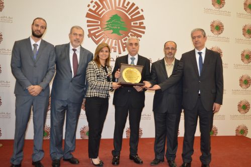 ثم سلمت النقيبة رولا ديب ورئيس مجلس جمعية ICD وأعضاء النقابة درعاً تكريمية لممثل الوزير حاصباني.