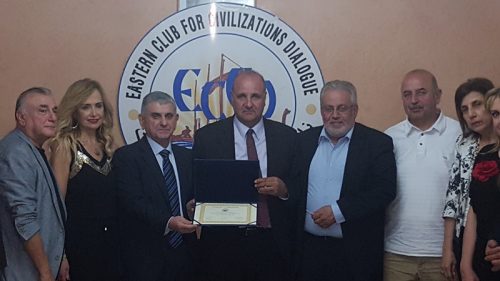 وفي ختام كلمته قدم شهادة تقدير للاستاذ حسين الحولي من اجل الجهود التي يبذلها في استراليا في خدمة ابناء الجالية ايمانا منه بأهمية الحوار والانفتاح على الاخر.
