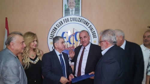 بداية افتتح رئيس النادي الاعلامي ايلي السرغاني السهرة بكلمة رحب خلالها بالوفد القادم من ملبورن – استراليا في منزلهم نادي الشرق لحوار الحضارات مؤكدا على انهم ليسوا بزوار بل هم اصحاب الدار… ناقلا اليهم تحيات الرئيس الفخري للنادي رئيس اساقفة الفرزل وزحلة والبقاع للروم الملكيين الكاثوليك سيادة المطران عصام يوحنا درويش ورئيس مجلس الامناء رئيس بلدية الدكوانة – مار روكز – ضهر الحصين المحامي انطوان شختورة واعضاء الهيئة الادارية والعامة.