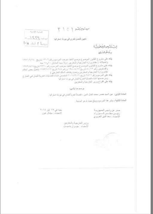 صدر مرسوم موقع من رئيس الجمهورية اللبنانية العماد ميشال عون ورئيس الحكومة سعد الحريري ، تم بموجبه تعيين منسق عام تيار المستقبل في بيرث الأسترالية المهندس خضر كمال الدين ابن بلده إيزال الضنيه قنصلا” فخريا” في ولايه غرب استراليا- بيرث ..