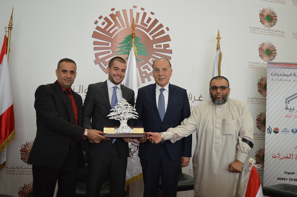 إستضاف توفيق دبوسي رئيس غرفة طرابلس ولبنان الشمالي حفل إشهار “الهيئة العربية لمكافحة المخدرات” ومشاركة الهيئة الوطنية لمكافحة المخدرات والشباب اللبناني للتنمية، الذي شهدته قاعة المؤتمرات الكبرى في الغرفة برعاية دولة رئيس مجلس الوزراء سعد الحريري ممثلا بالنائب سامي فتفت بحضور سامي رضا ممثلا الوزير محمد كبارة الوزير السابق أحمد فتفت والدكتور مصطفى الحلوة ممثلا النائب السابق محمد الصفدي والعميد جورج رزق ممثلا قائد الجيش العماد جوزيف عون والعقيد فواز محفوض ممثلا المدير العام لقوى الأمن الداخلي العماد عماد عثمان والعقيد عبد الرزاق مالطي ممثلا المدير العام للأمن العام اللواء عباس ابراهيم والرائد ميشال فارس ممثلا المدير العام لأمن الدولة اللواء طوني عيسى ورئيس بلدية طرابلس أحمد قمر الدين إضافة الى حضور ضيوف عرب لا سيما من المملكة الاردنية الهاشمية تتقدمهم معالي الوزيرة ريما أبو حمدان.