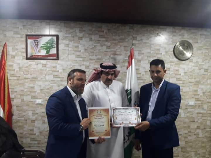 و كذلك قام مشكورًا بتقديم كتابينا إلى سعادة الشّيخ جاسم العسكر رئيس العشائر العربيّة إضافة لتكريمه بشهادتي تقدير للرّيادة و القيادة وشكر وتقدير لجهوده المبذولة من قبل جمعية الإصلاح والإنماء الإجتماعي ونسخة من ميثاق التّواصل العالمي للسّلام…