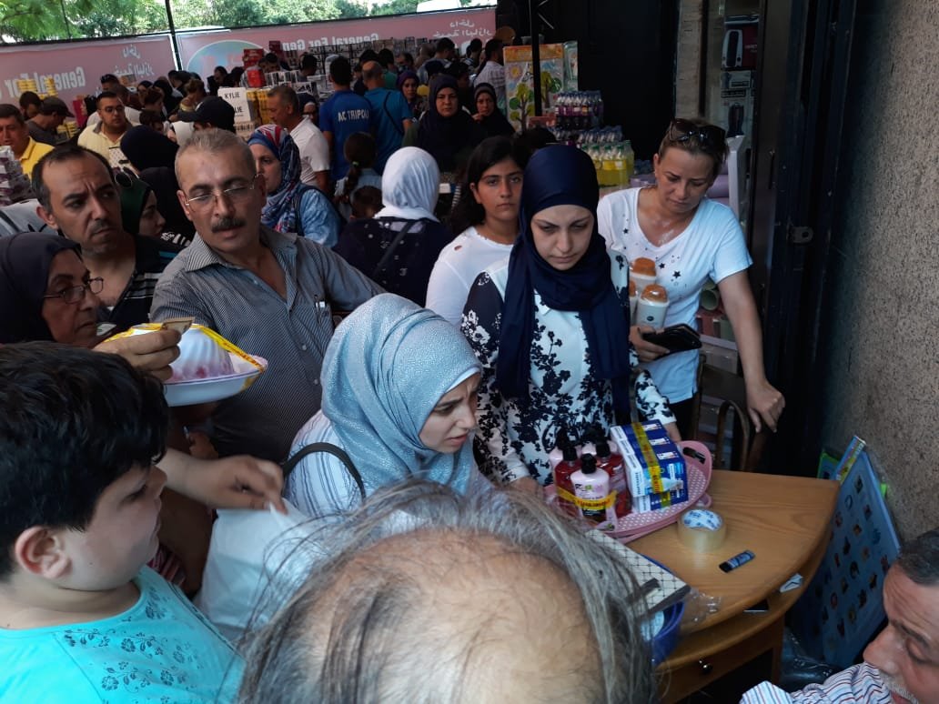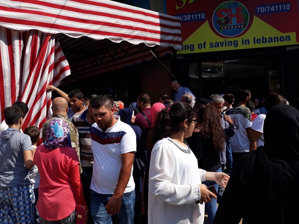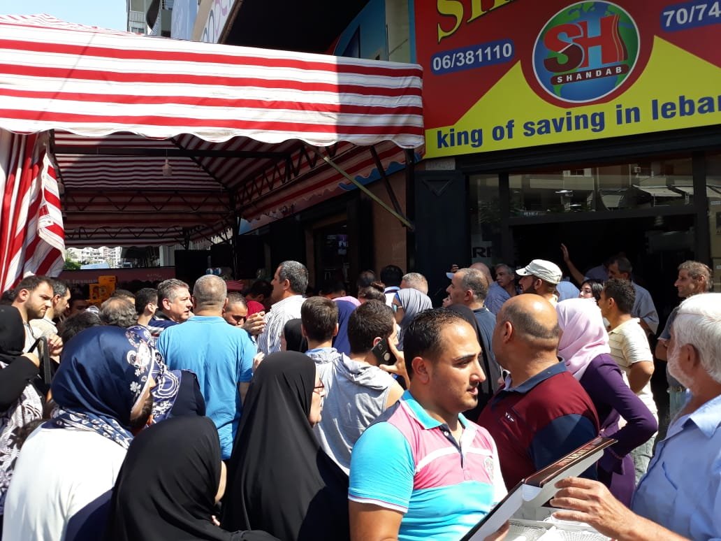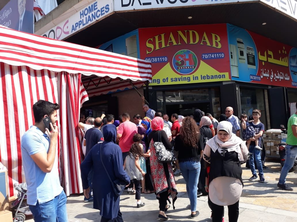 تجمع المئات امام مؤسسة المستشار الاقتصادي مصطفى شندب للتوفير. حيث قدم عروض خيالية وبازار خيالي على نحو ألاف السلع من أدوات منزلية واجهزة كهربائية ومواد تنظيف وعصائر وغيرها.. وسعر القطعة أو المجموعة فقط بخمسة آلاف ليرة لبنانية ..