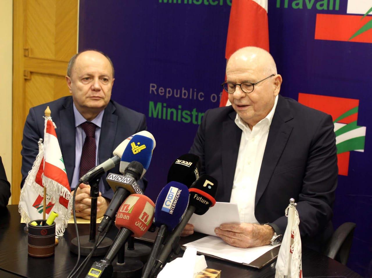 اضاف: ارحب بكم في وزارة العمل واغتنم الفرصة لنشدد على ضرورة تسهيل مهمة الرئيس المكلّف، والتعاون معه واحترام نصوص الدستور وعدم التهويل على الرئيس المكلّف أو محاولة المسّ بصلاحياته.