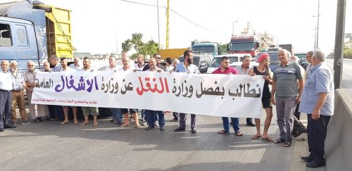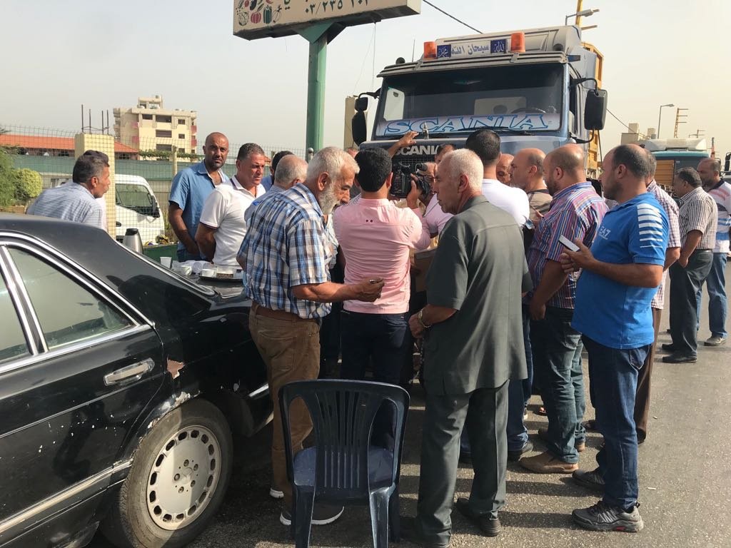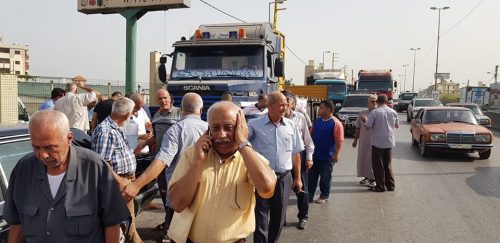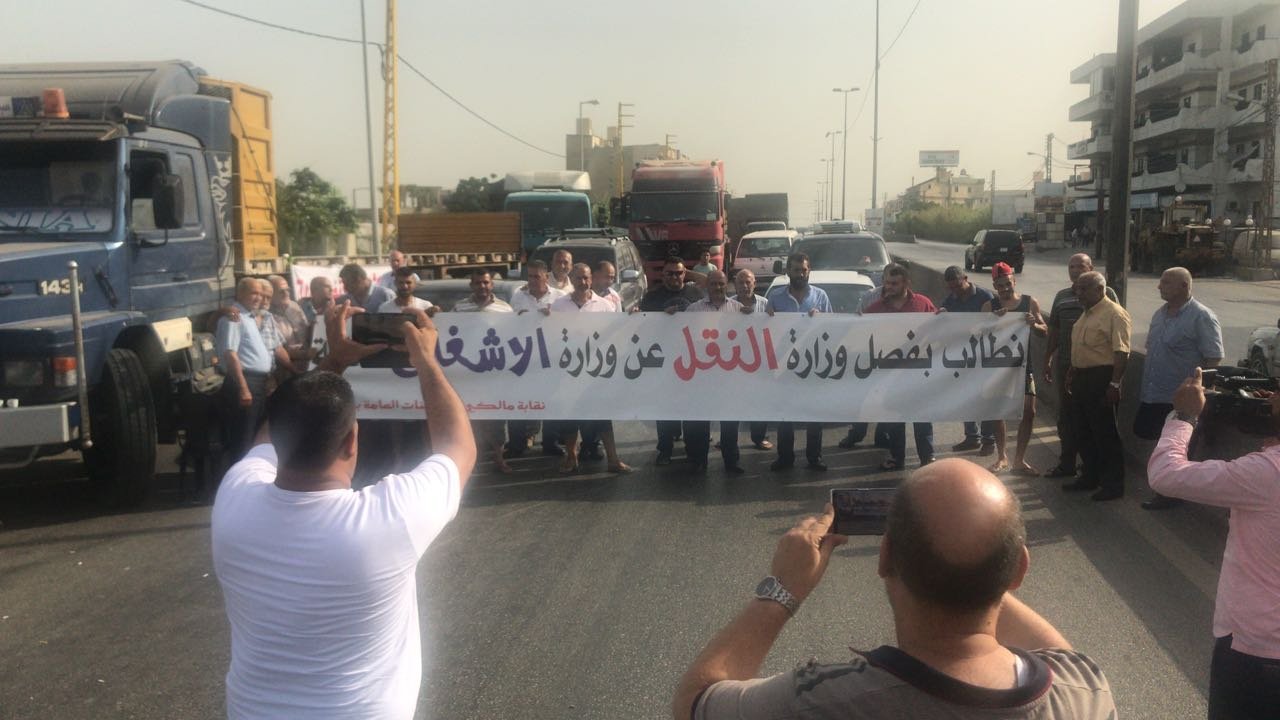 سائقو ومالكو الشاحنات قطعوا الطرق العام الذي يربط عكار بطرابلس عند جسر بلدة المحمرة وذلك مع بدء تحرك قطاع النقل والاتحاد البري في لبنان .