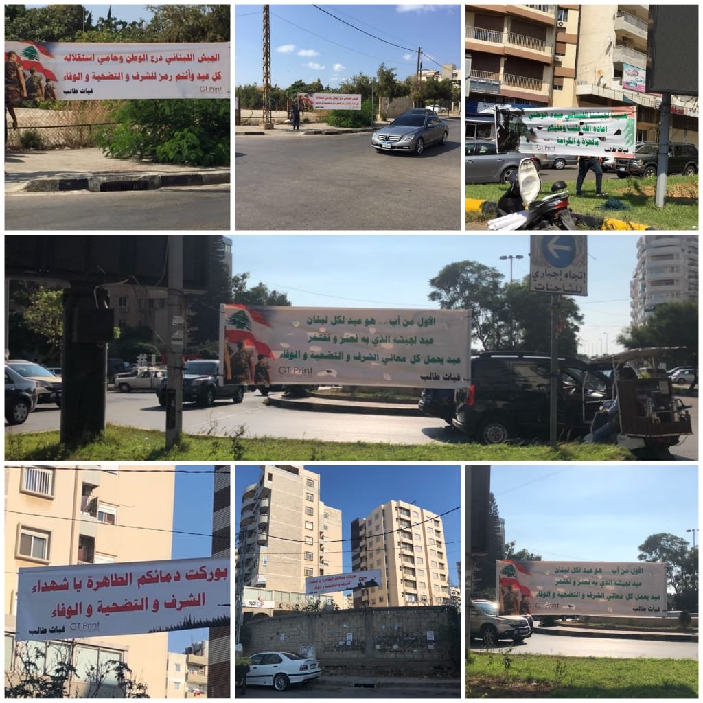 _هنأ الناشط الاجتماعي غياث طالب صاحب مطبعة جي تي برنت للطباعة و الاعلان الجيش اللبناني بمناسبة حلول عيده ، متوجهاً الى مؤسسة الجيش بأسمى آيات التقدير و الاحترام بكافة التضحيات التي يقدمها دفاعاً عن الوطن حيث اثبت خلال السنوات الماضية انها المؤسسة الوحيدة الضامنة بقدراتها القتالية المتطورة و المشهود لها دولياً.