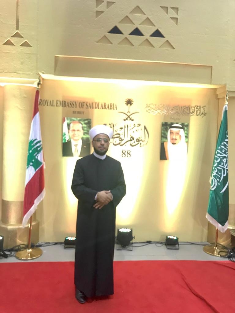 شارك فضيلة الشيخ الدكتور ناجي علوش على رأس وفد كبير ضم عددا من رؤساء البلديات والفعايات الطبية والتربوية بالاحتفال الذي اقيم في السفارة السعودية لمناسبة الذكرى ٨٨ لليوم الوطني السعودي .