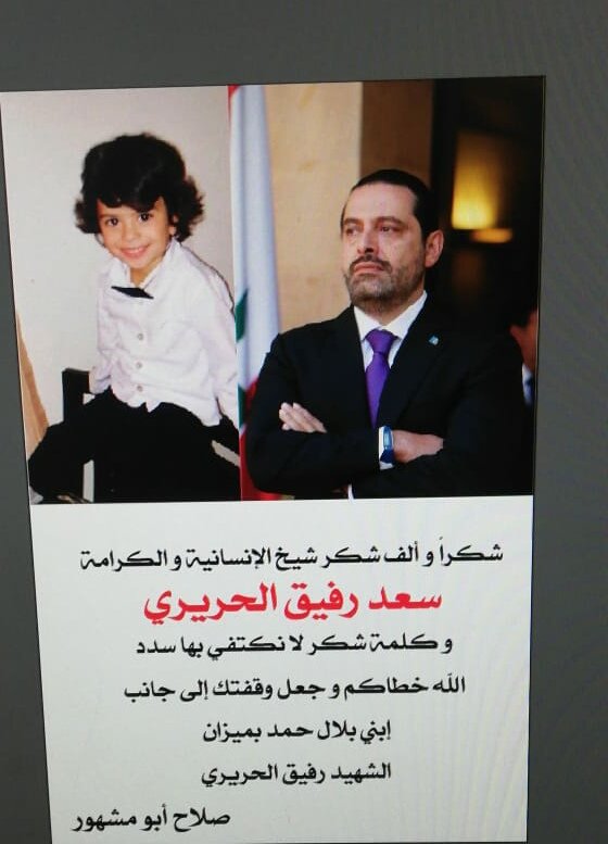 الطفل بلال حمد وعائلته يشكرون الرئيس سعد الحريري واللواء الركن محمد خير على طريقته الخاصة