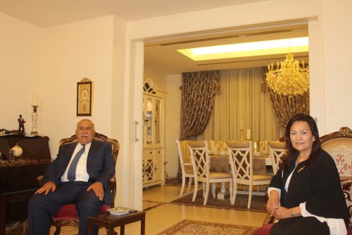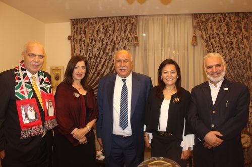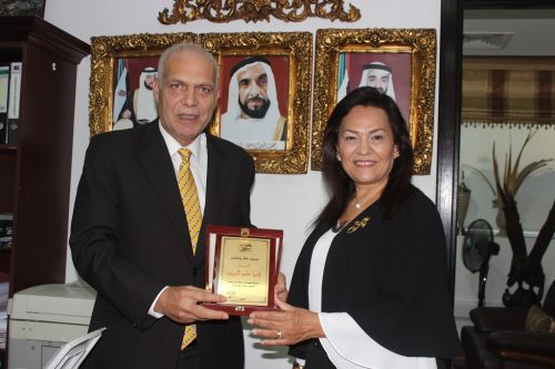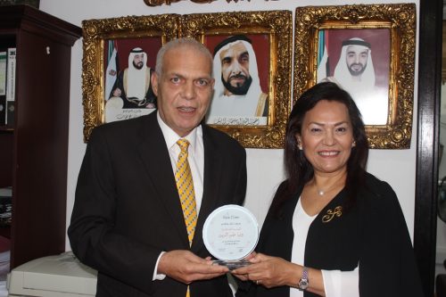 وكانت مناسبة للتداول في شؤون وشجون الساعة ، ولمناسبة عام زايد ، قدمت المهندسة الاستشارية دنيا علم الدين للشعار شال الإمارات العربية المتحدة وقد رسم عليه صورة لرئيس الدولة سمو الشيخ خليفة بن زايد آل نهيان وولي عهده سمو الشيخ محمد بن زايد آل نهيان ، وذلك تقديرا” له ولدوره الاعلامي المتميز وحبه لهذه الدولة العظيمة كحبه للبنان ..