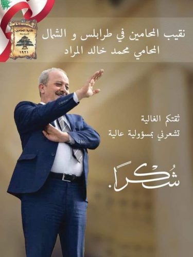 تتقدم منسقية ملبورن في تيار المستقبل من رئيس هيئة الاشراف والرقابة في تيار المستقبل المحامي محمد المراد باحر التهاني واطيب الاماني لفوزه بمنصب نقيبا للمحامين في طرابلس والشمال . ان منسقية ملبورن تجد فية كل الثقة والامال والرؤية الواعدة وذلك لانجاز الافكار والمشاريع والتطلعات المستقبلية التي تخدم النقابة والمحامين .وتتمنى للنقيب النجاح الدائم والمستمر والتوفيق في اداء وتطور سير وعمل النقابة ودمت فخرا لتيار المستقبل ورمزا للحق والعدل .الف مبروك للمحامي الاستاذ محمد المراد نقيبا للمحامين في طرابلس والشمال