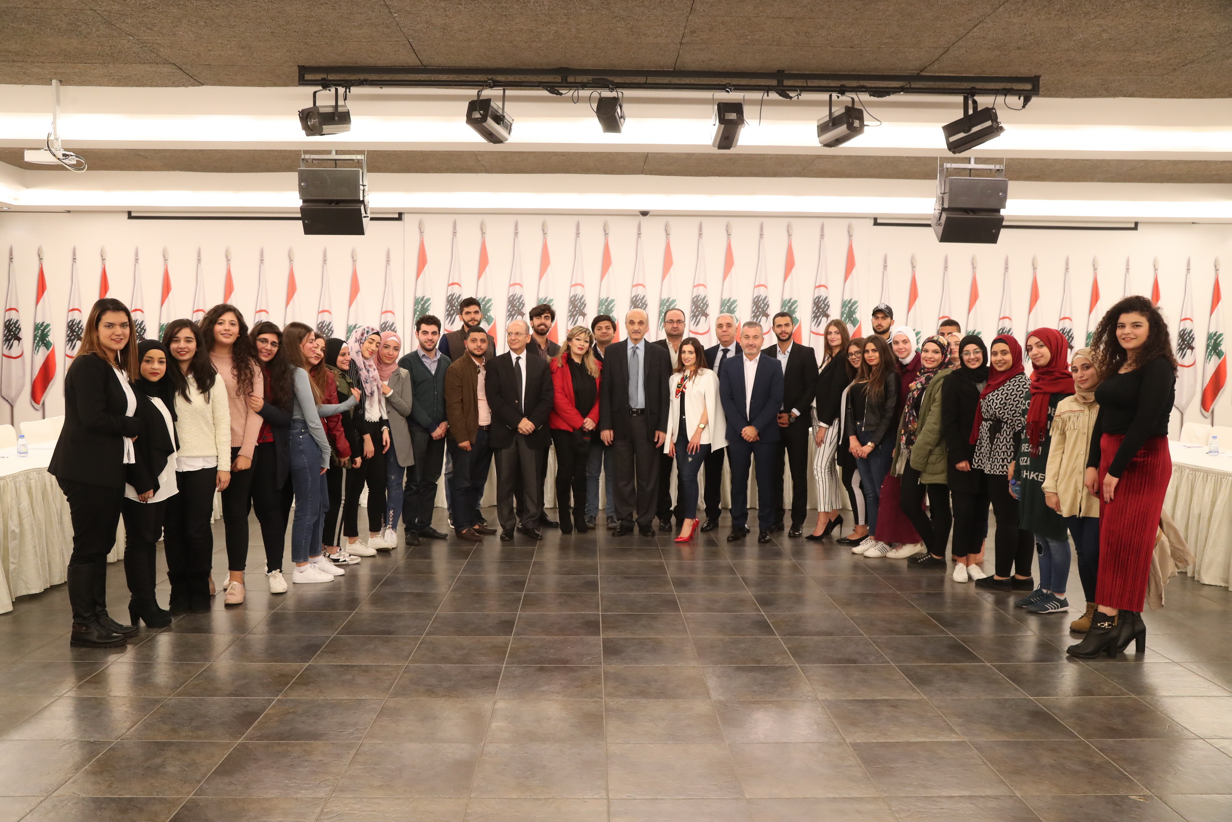 جعجع يلتقي في معراب وفداً من طلاب جامعة العزم