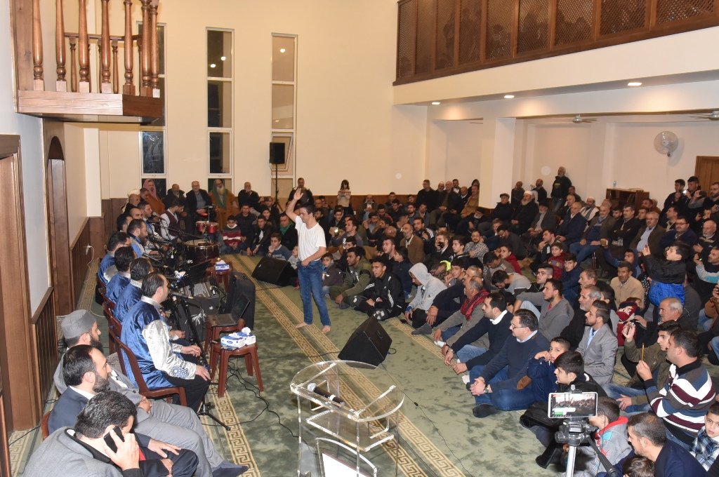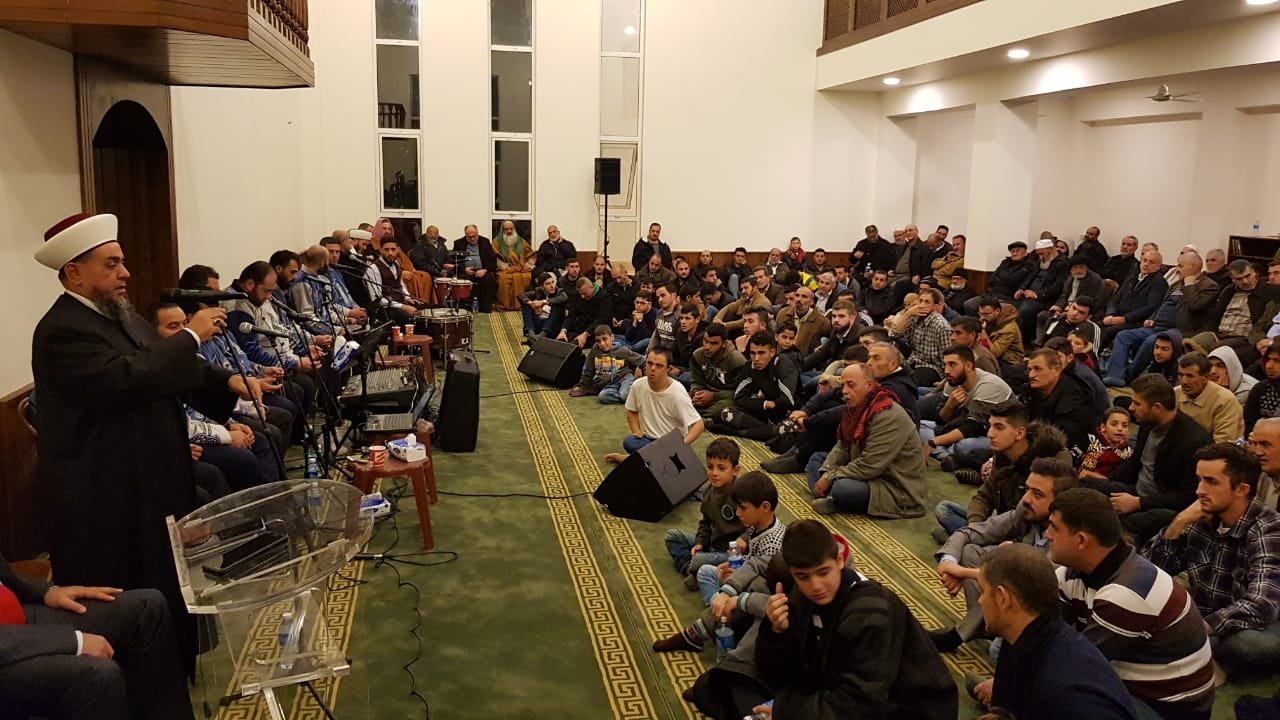 بدأت الأمسية بآي من الذكر للحكيم للمقرىء طليع ياسين، فترحيب من الشيخ عماد خضر بالفرقة التي جاءت من بلاد الشام لتحيي هذا الإحتفال، “بانشيد تطرب لها الآذان، وتفوح منها رائحة المحبة لنبي الله صلى الله عليه وسلم”.