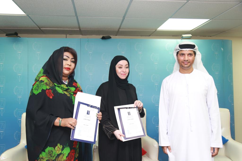 في ختام الجلسة قدم الأستاذ محسن سليمان شهادة شكر ومشاركة للتفاعل الثقافي والفكري بالإتحاد لكل من الأستاذة نعمات حمود آدم والأستاذة عائشة العاجل على حضورهما وتجليهما على منصة الإبداع .