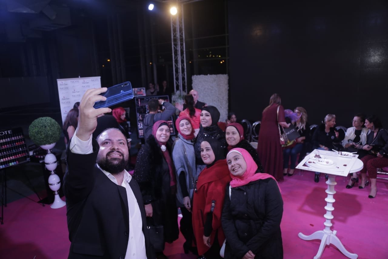 اسمحوا لي أن نرحب بالممثلة الرائعة برناديت حديب بيننا التي دخلت قلوب الناس من خلال عالم التمثيل . وبعد الاحتفال سيتم توزيع دروع تكريمية على كل من المشاركين على ستاند أخصائية التجميل رانية عثمان.