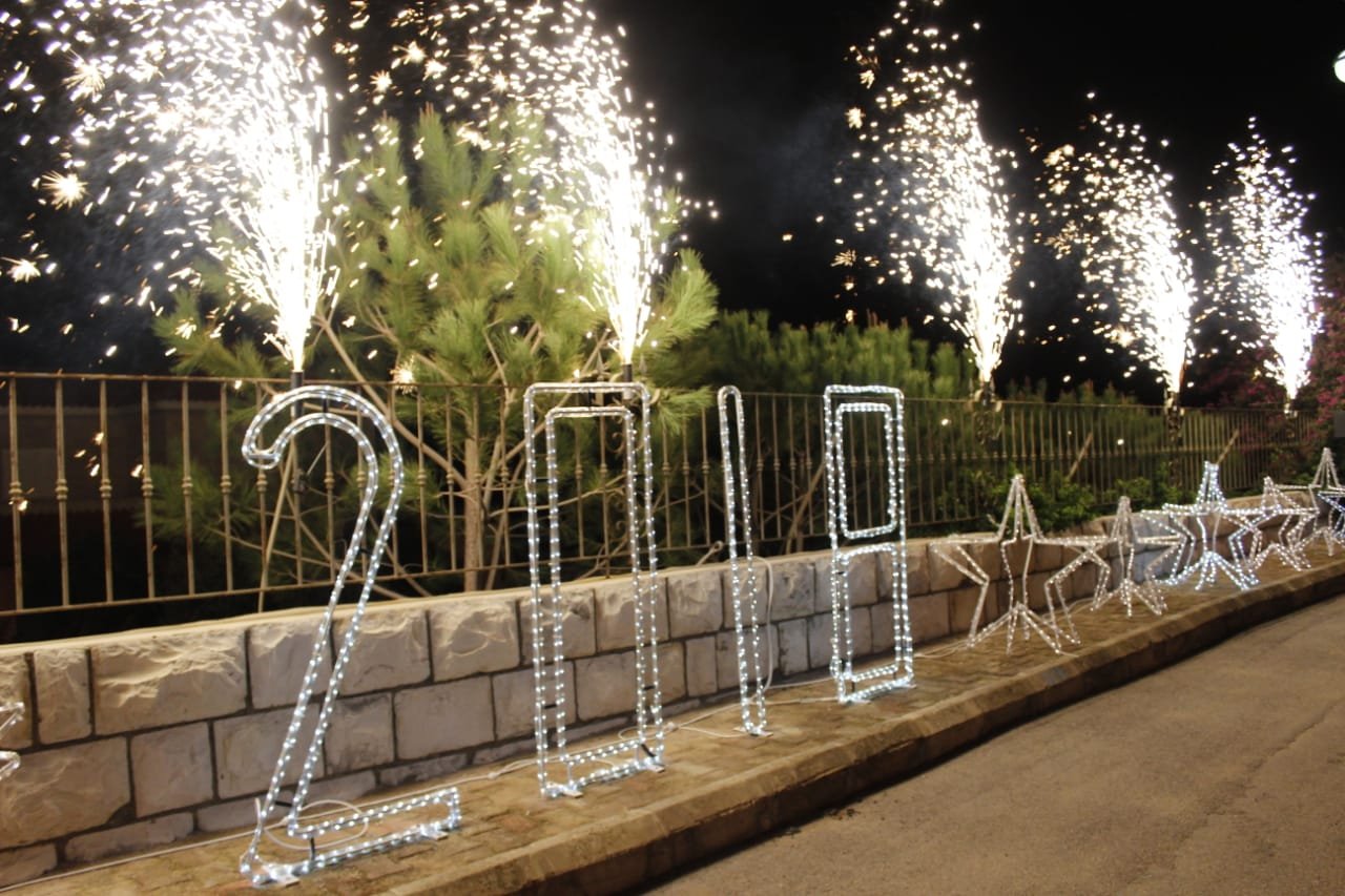 ثم أضيئت الشجرة ومغارة الميلاد في ظل الاسهم النارية التي أنارت سماء البلدة.
