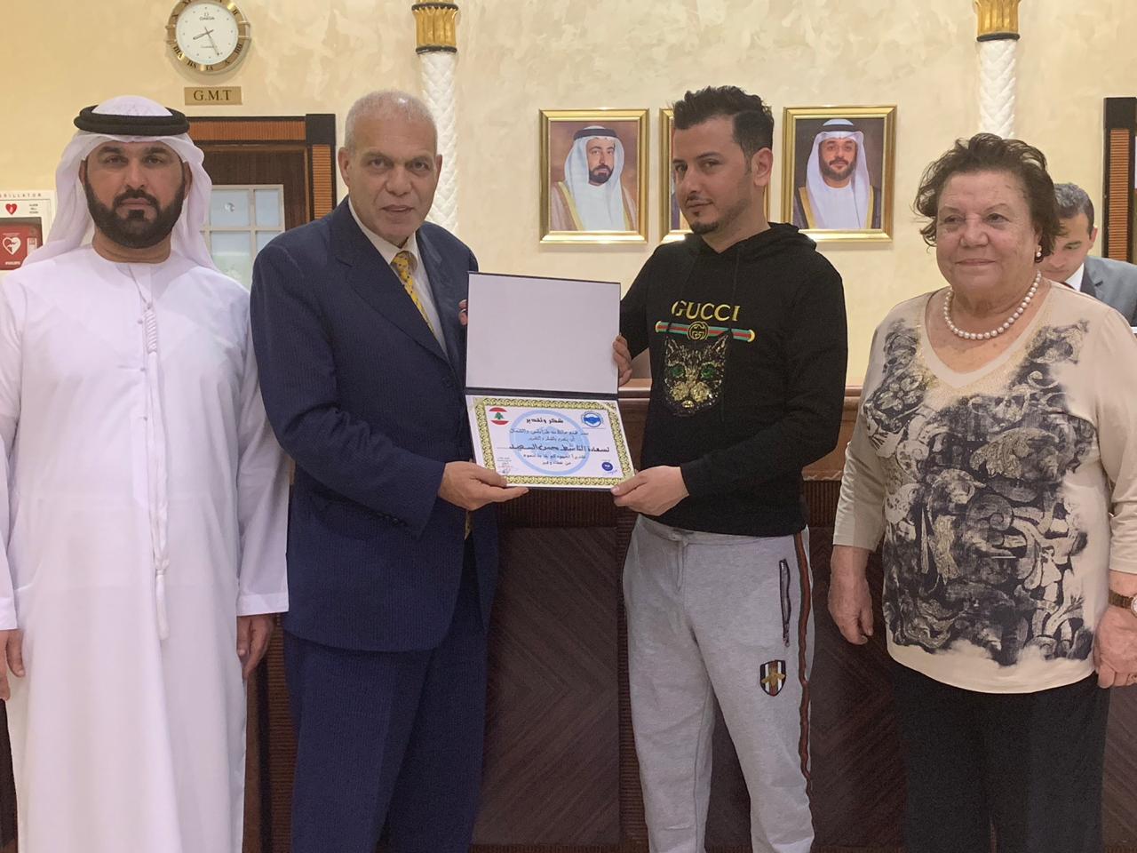 الناشط الاجتماعي الجزائري محسن السعيد يتسلم شهادة تقدير من تجمع عائلات طرابلس والشمال نيوز في امارات زايد الخير