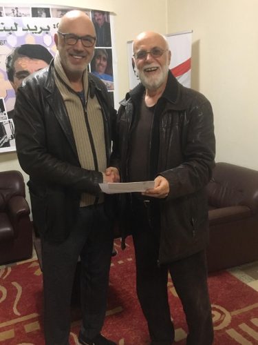 وقد سلّم رئيس نقابة ممثلي المسرح والسينما والإذاعة والتلفزيون في لبنان وعضو اللجنة العليا لمهرجان لبنان الوطني للمسرح النقيب نعمة بدوي في دار النقابة جائزة الهيئة العربية للمسرح وقيمتها عشرة آلاف دولار للمخرج كارلوس شاهين عن أفضل عمل مسرحي “وهم” للكاتب الروسي إيفان فيريبايف وأداء كارول الحاج وجوزف زيتونة وسيرينا الشامي ووسام فارس.