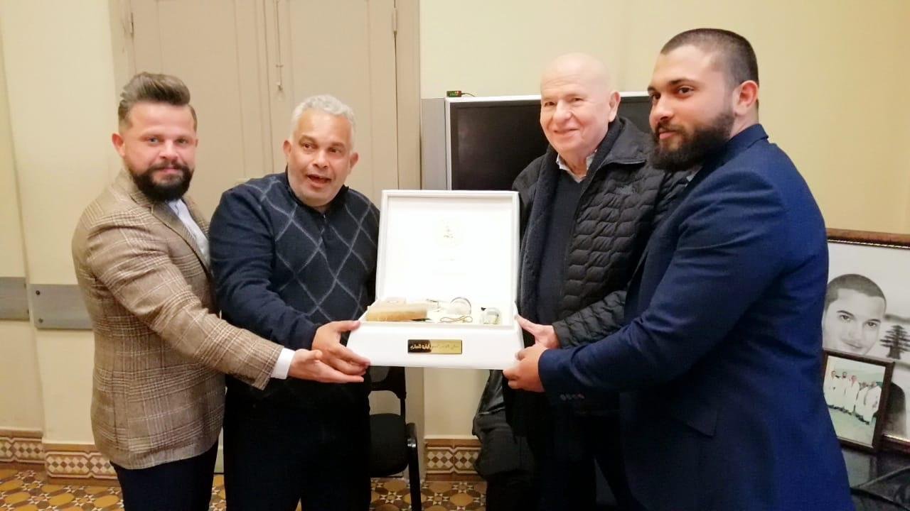 وفِي ختام الزيارة قدم الدكتور حسون هدية تقديرية للوزير كبارة عربون محبة من القرية البيئية.