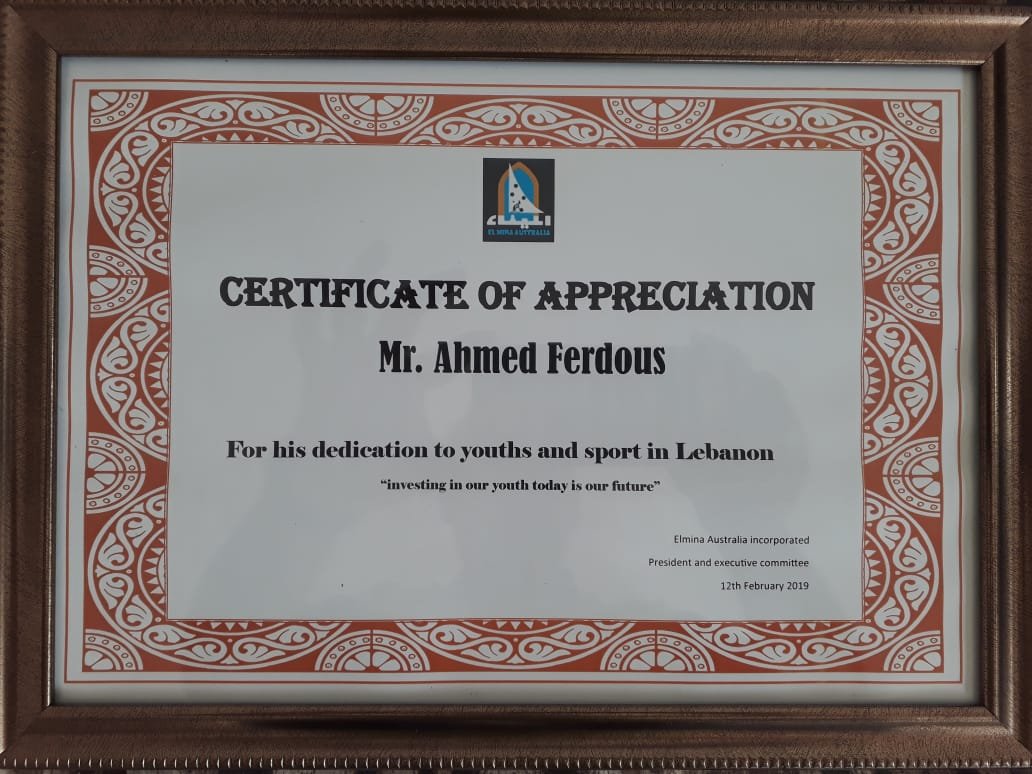 كرمت جمعية الميناء في أستراليا رئيس جمعية التضامن الشعبي ورئيس إتحاد الأندية الرياضية لكرة القدم في شمال لبنان الأستاذ أحمد فردوس وذلك خلال حفل ساهر في مقر الجمعية أحياه المطرب محمد الأمير بحضور عضو مجلس بلدية كانتربيري بانكستون السيد جورج زخيا ، رئيس المجلس اللبناني الأسترالي السيد غازي قلاوون ، سفير المحبة والتسامح الناشط الاجتماعي الحاج طلال سيفو وعدد من أعضاء الجمعيات والشخصيات اللبنانية الأسترالية ..