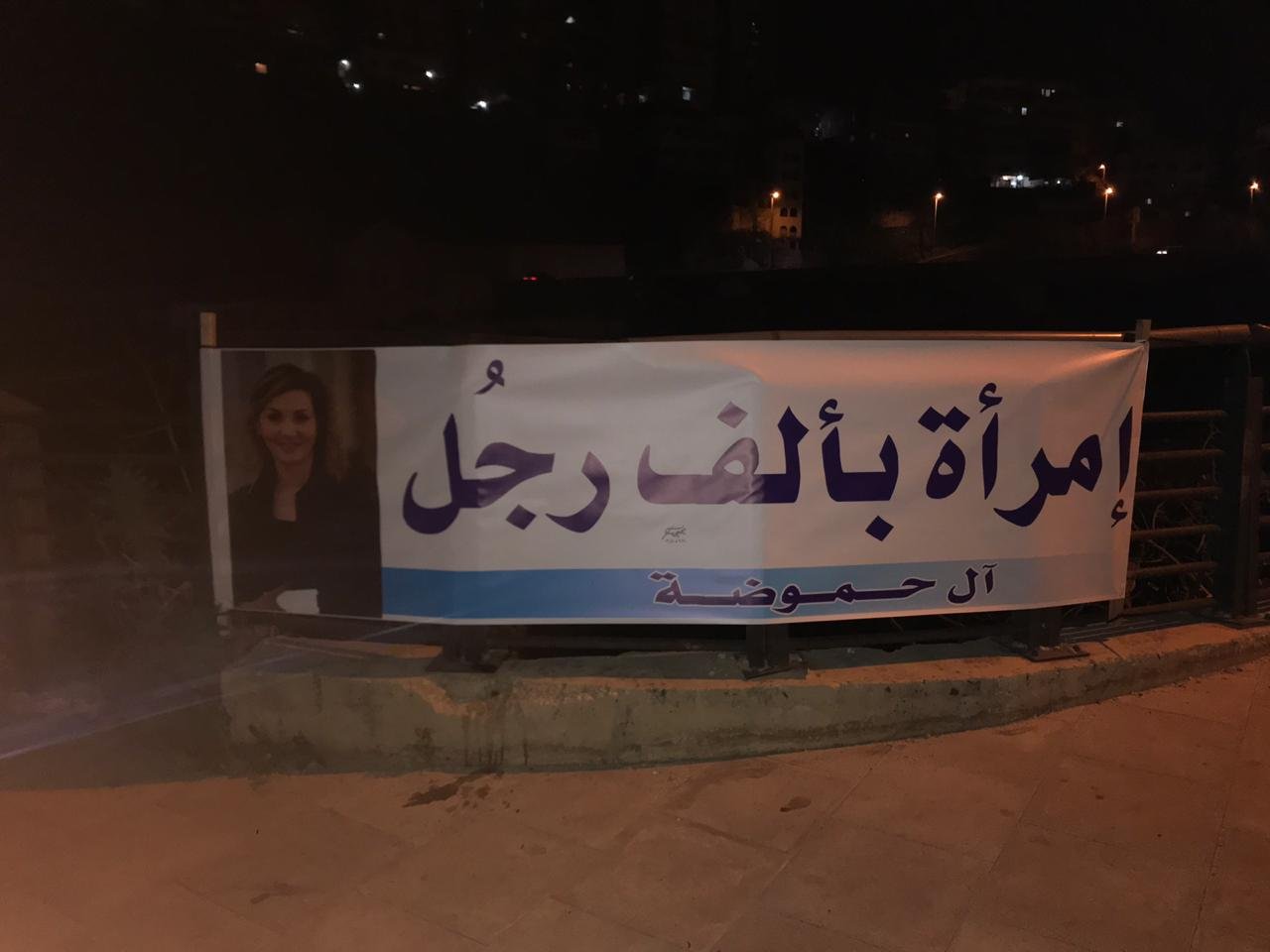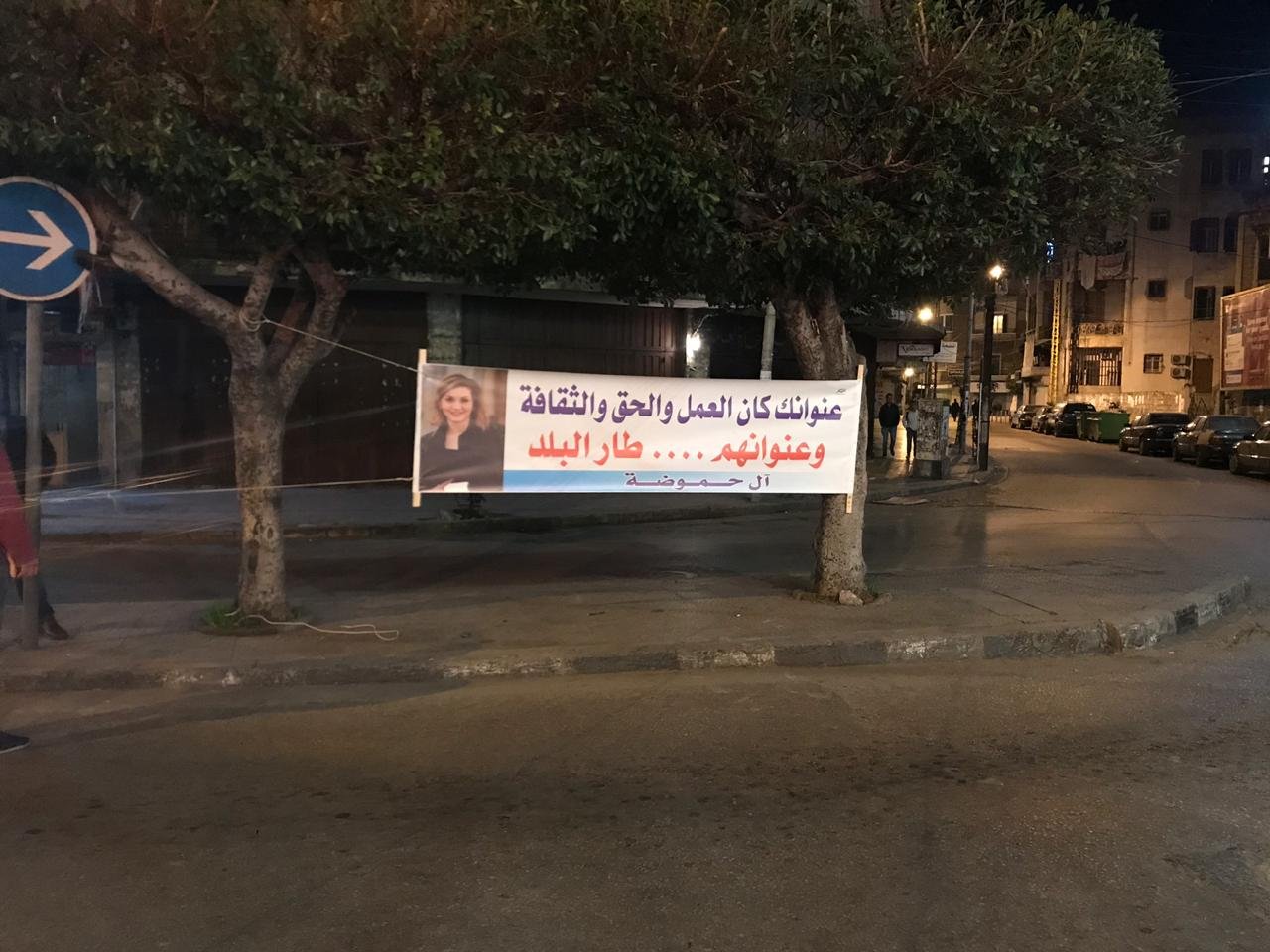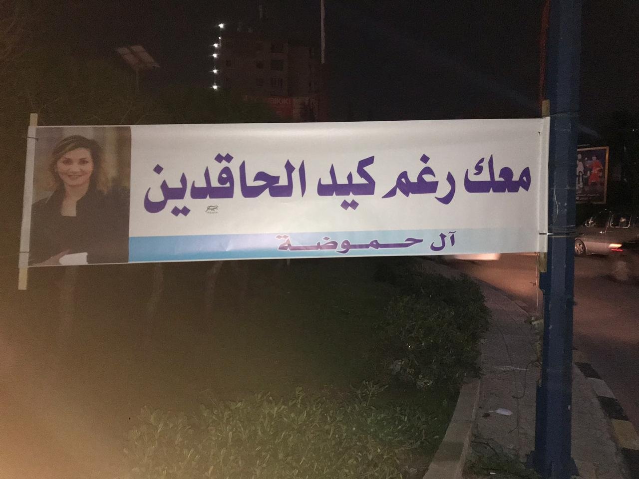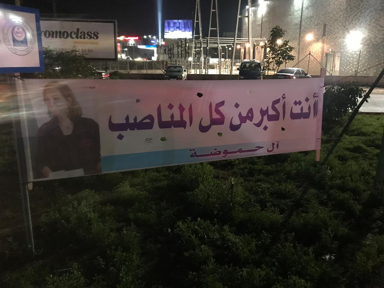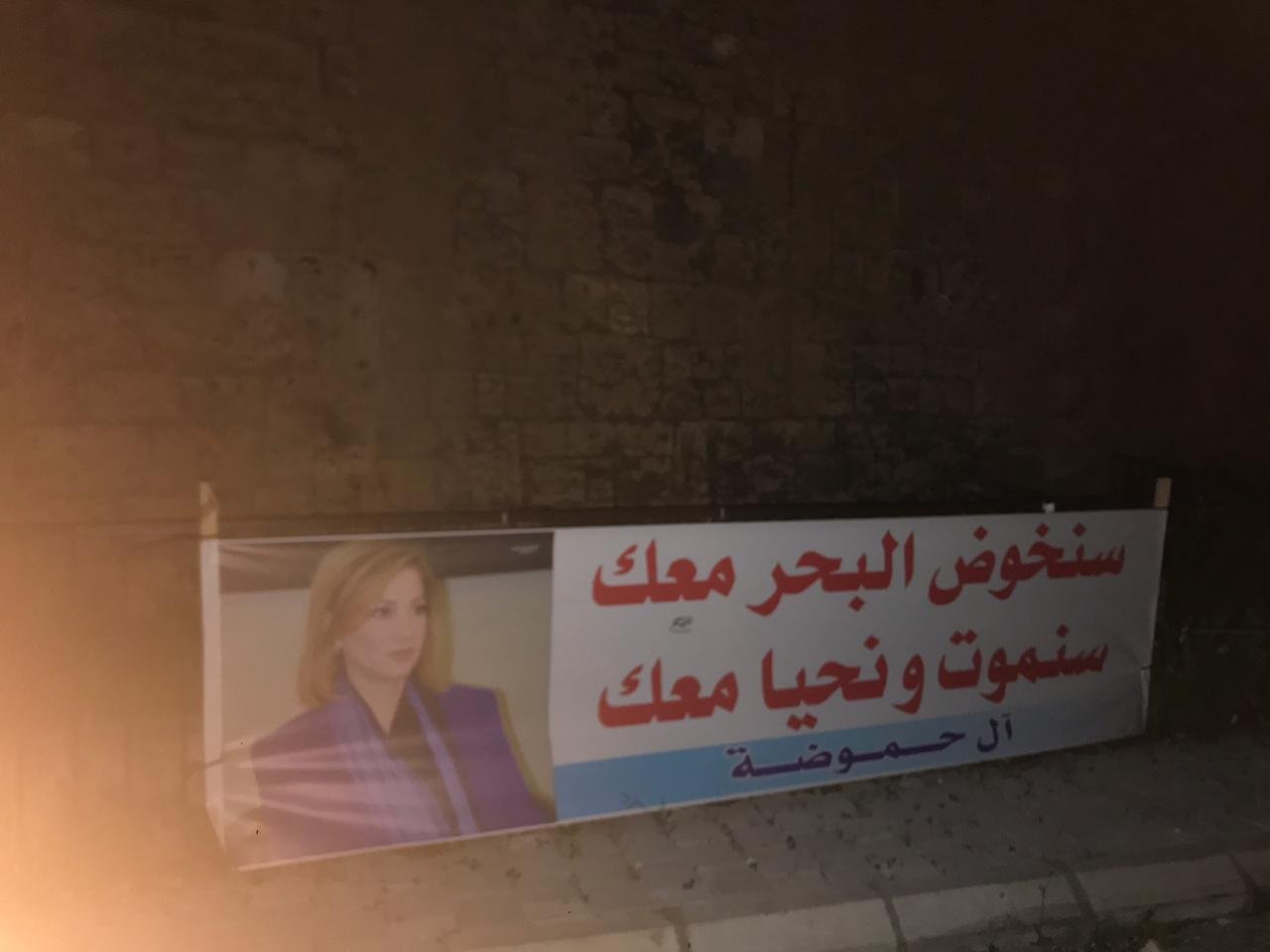 علي حموضة يرفع اللافتات الداعمة والمؤيدة للدكتورة ديما جمالي