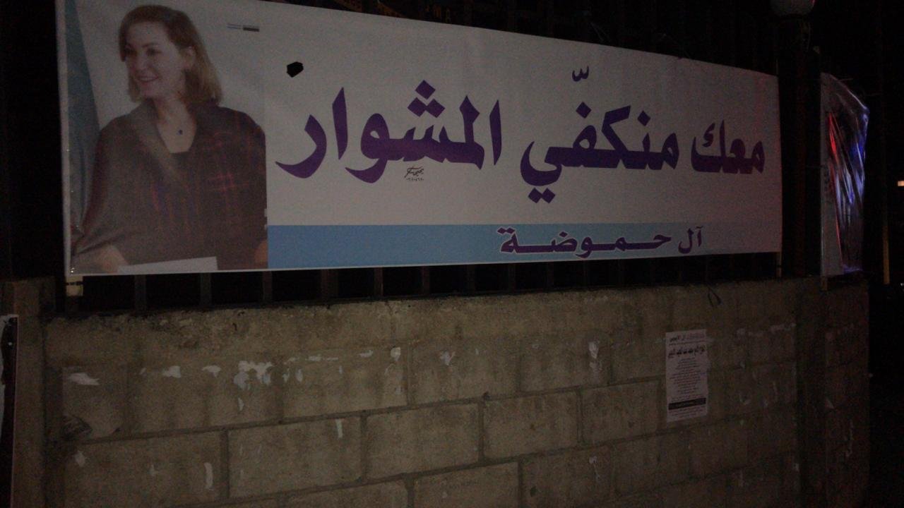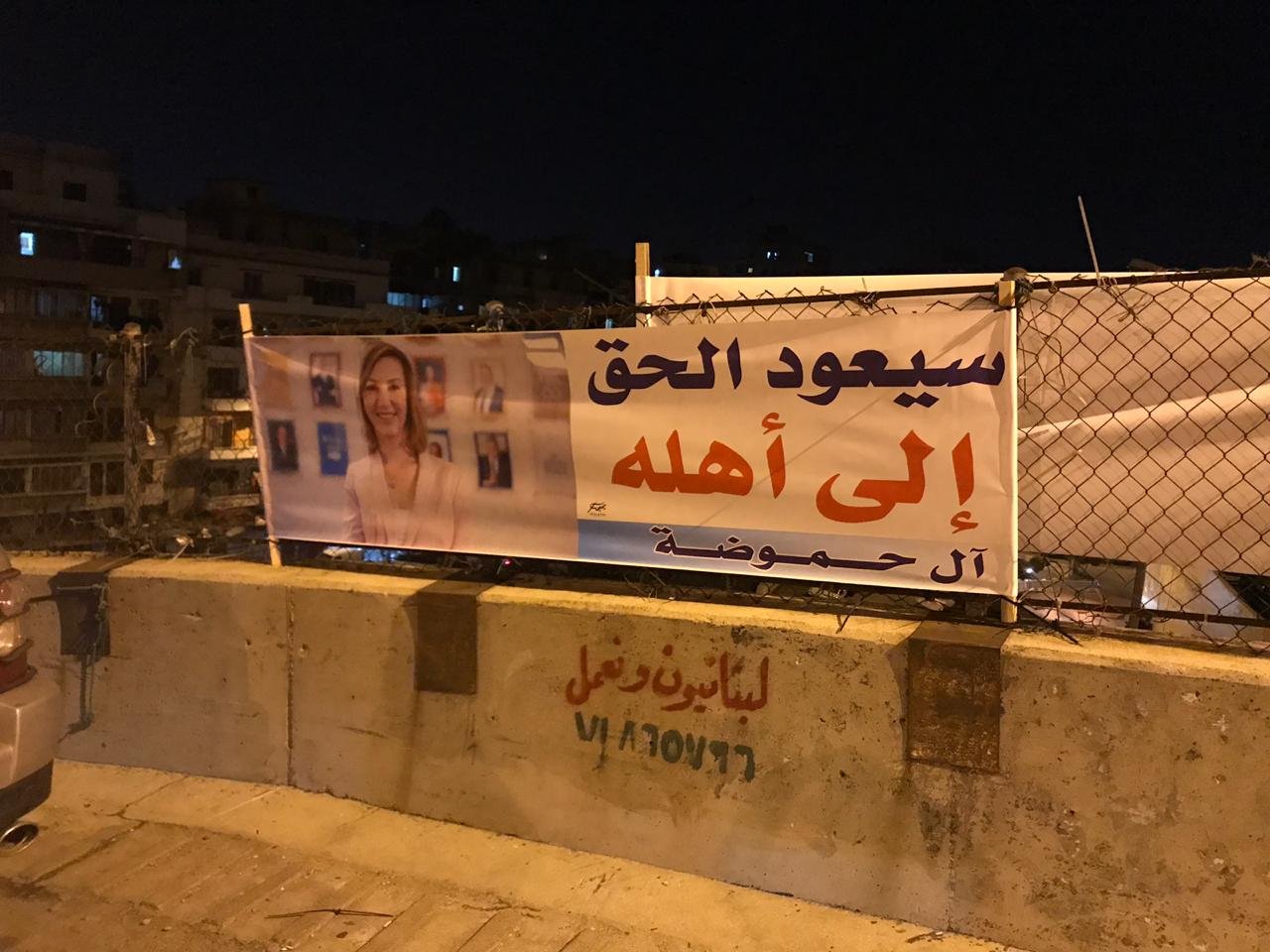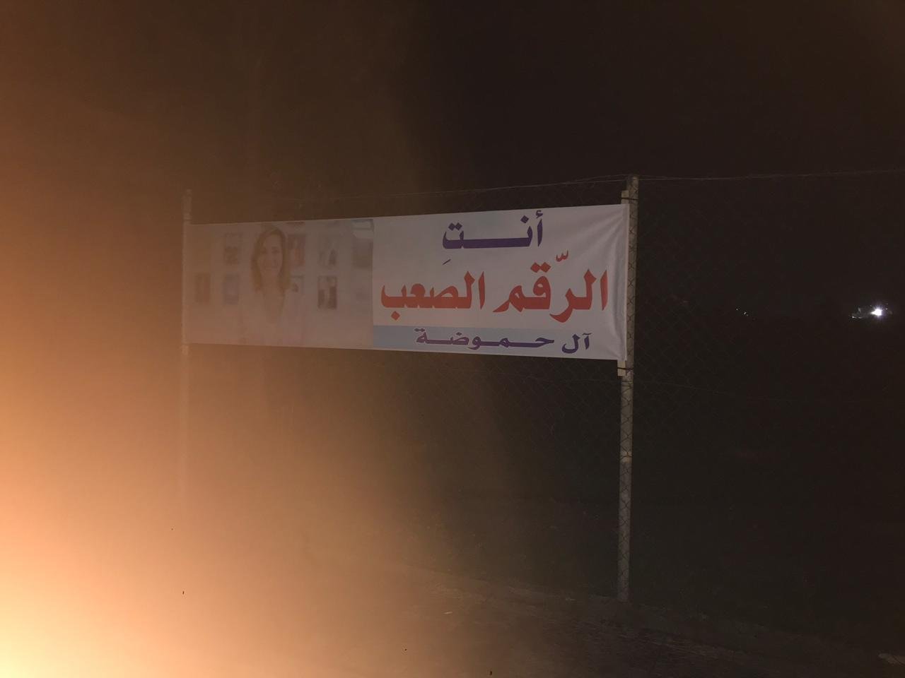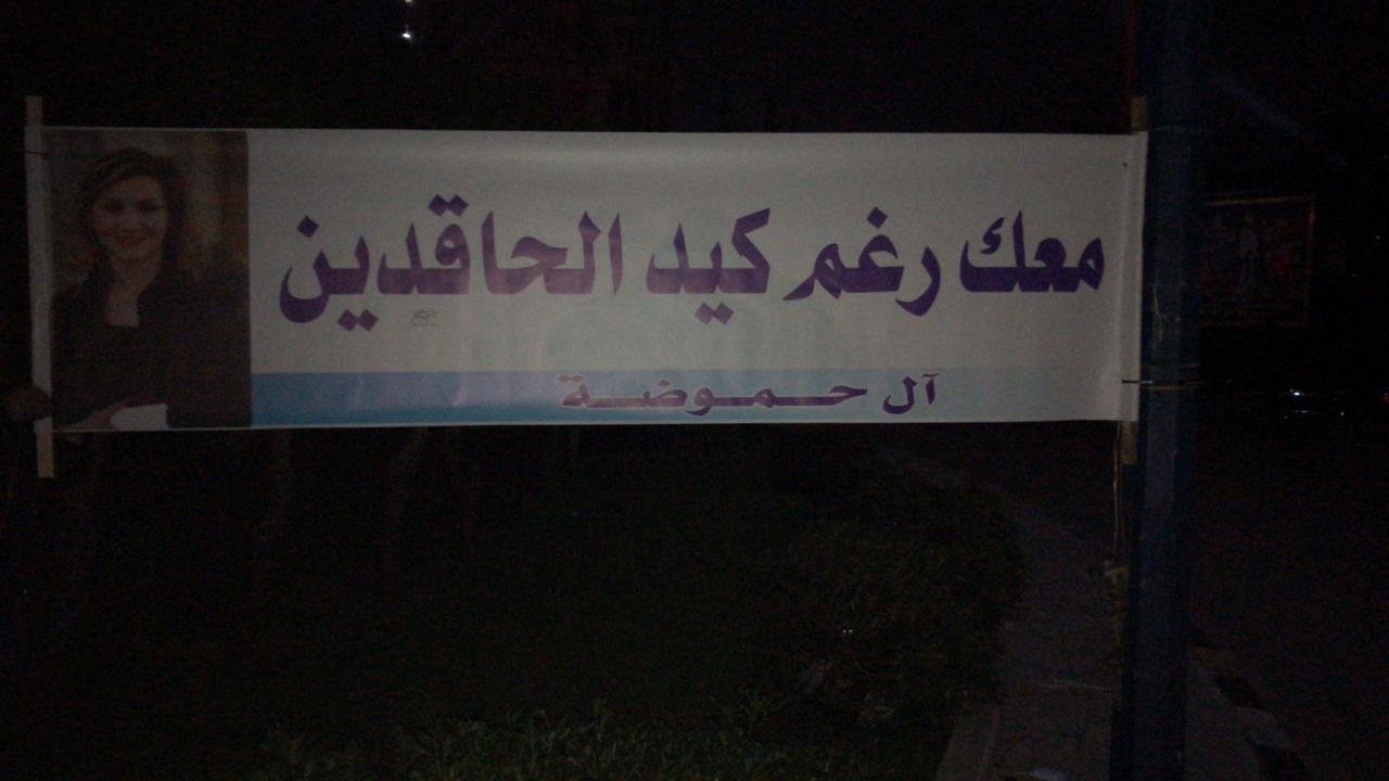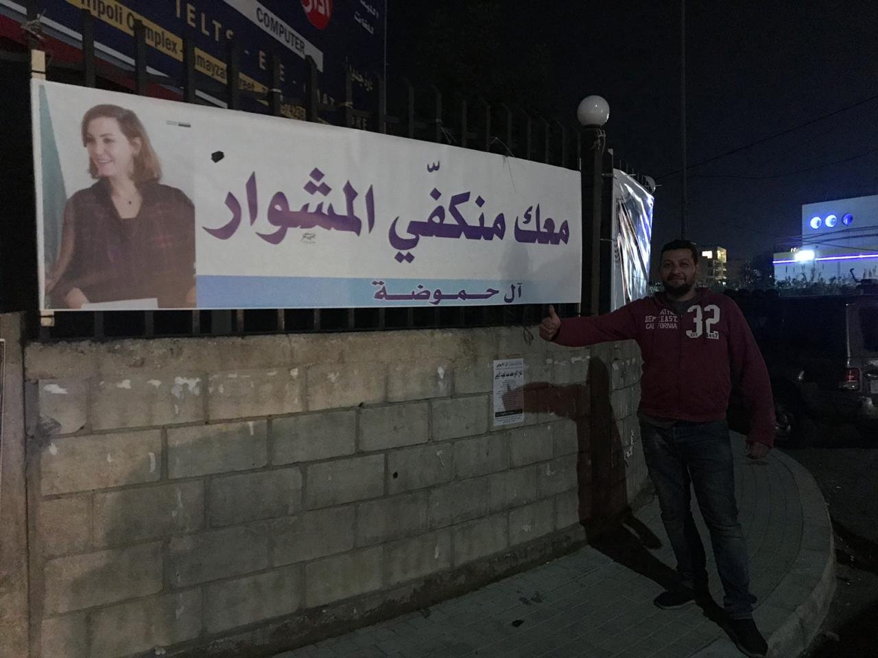 علي حموضة يرفع اللافتات الداعمة والمؤيدة للدكتورة ديما جمالي