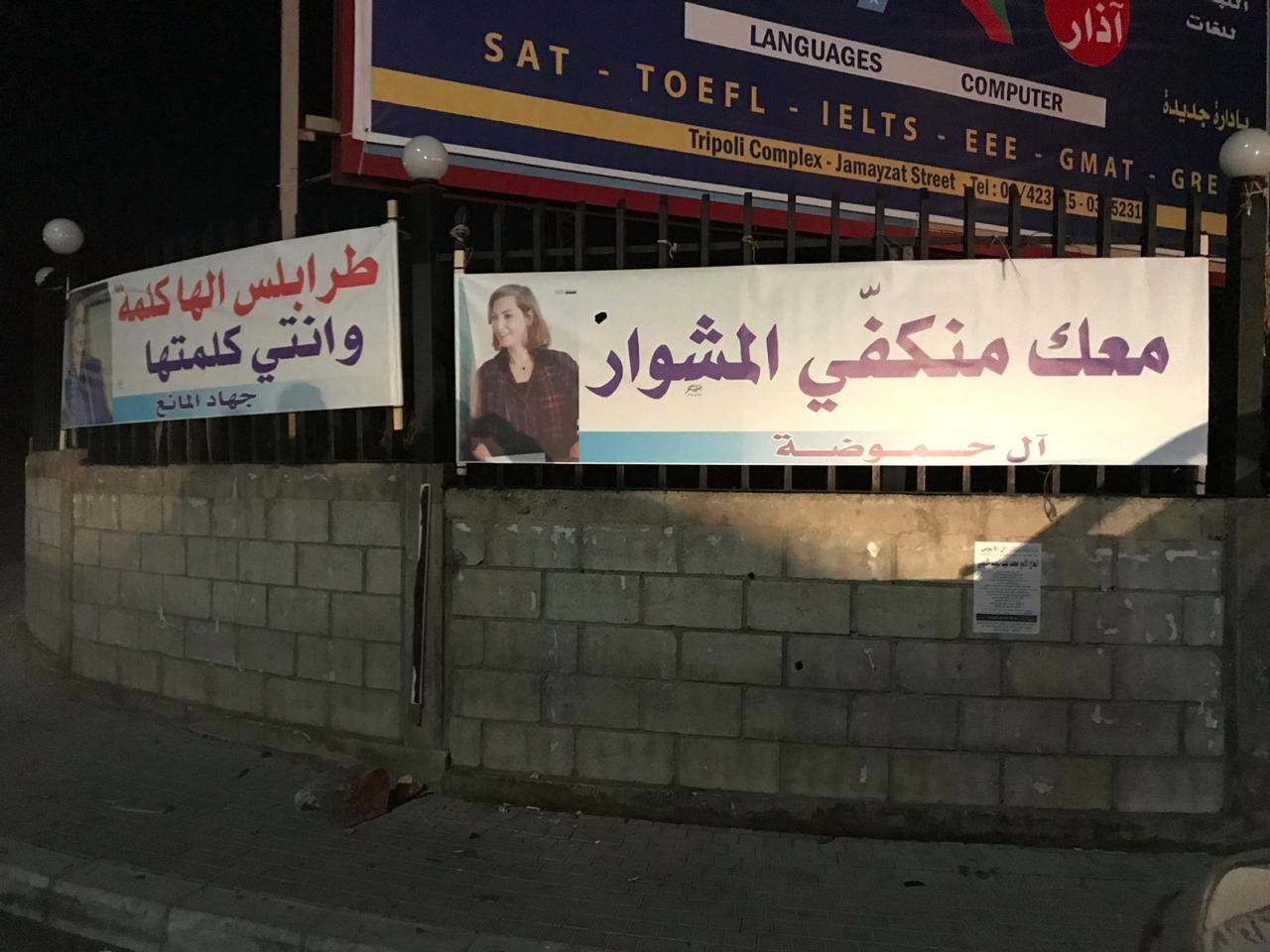 تضامنا” مع الدكتورة ديما جمالي رفع الناشط الاجتماعي علي حموضة باسم أل حموضة اللافتات المؤيدة والداعمة للدكتورة جمالي في أرجاء طرابلس .. وكتبت عليها عبارات ( معك رح نكمل المشوار . معك سنخوض البحر .. نموت وتحيا معك .. امرأة بالف رجل .. انت اكبر من المناصب ) وعبارات أخرى..