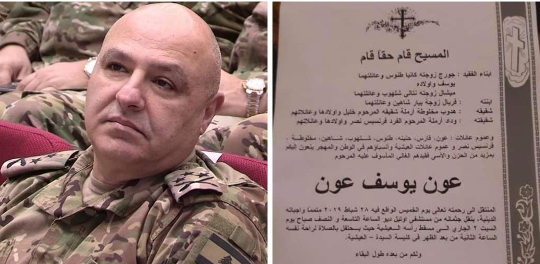 فقدت الانسانية رجلا” نبيلا” من أصدق الرجال وفاءً واخلاصا” للوطن يوم فقدت المغفور له الراحل عون يوسف عون ، فقد آلمنا هذا الفراق ولكن أمام رهبة الموت لا يسعنا الا أن نقف بإجلال احتراما” للعزة الإلاهية سائلين الله للفقيد الرحمة ولعموم العائلة وفي مقدمتهم العماد قائد الجيش جوزيف عون أصدق التعازي سائلين الله أن يكون هذا آخر مصاب ، وللفقيد الرحمة ولكم من بعده طول البقاء ..