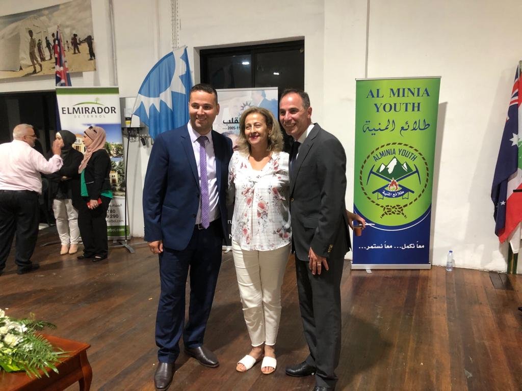 ومن المطار توجه سعادة النائب الى مركز جمعية ابناء المنية في منطقة أوبرن التي أعدت له استقبالا رسميا وشعبيا كبيرا حيث كان في استقباله الشيخ يحي الصافي امام وخطيب مسجد الإمام علي كرم الله وجهه في لاكمبا والشيخ مالك زيدان ممثل دار الفتوى اللبنانية في استراليا وعضو المجلس السياسي في تيار المستقبل الدكتور معتز زريقة ونواب وأعضاء برلمان ولاية نيو ساوث وايلز الدكتور جهاد ديب والسيدة جوليا فين والسيدة ليندا فولتز ورئيس بلدية أوبرن السابق الدكتور هشام زريقة وأعضاء البلديات السيدة علا حامد وجورج زخيا وبلال حايك وممثلون عن المؤسسات الاعلامية من إذاعة وصحف ومواقع الكترونية والجمعيات الخيرية والروابط الاجتماعية وناشطون سياسيون واجتماعيون وعدد غفير من ابناء الجالية.